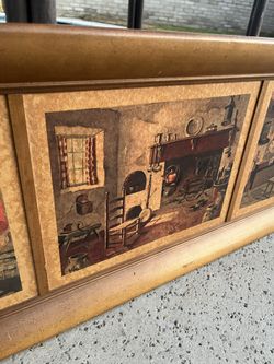Mid Century Antique Lithograph Print Colonial Kitchen Hearth Scenes, Large 4 Panel $95East Los Angeles, CA