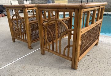 Pair of Vintage Mid Century Rattan Bamboo Glass-Top End Tables, Palm Beach Regency$295Bakersfield, CA