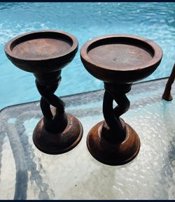 Pair of Hand Crafted Twisted Wood Rustic Pillar Candle Holders$35East Los Angeles, CA