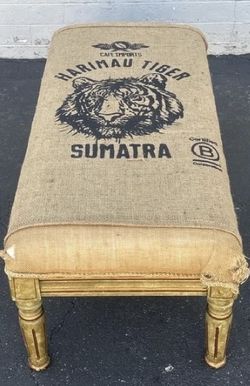 Vintage Wide Durable Bench Upholstered w/ Burlap Coffee Sumatra Tiger$150Hazard, CA