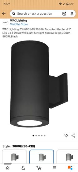 WAC Lighting DS-WD05-N930S-BK Tube Architectural 5" LED Up & Down Wall Light Straight Narrow Beam 3000K 90CRI, Black$400Federal Way, WA