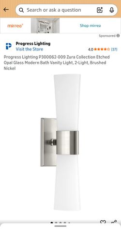 Progress Lighting P300062-009 Zura Collection Etched Opal Glass Modern Bath Vanity Light, 2-Light, Brushed Nickel$80Federal Way, WA
