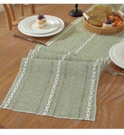 Niviy Sage Green Boho Cotton Linen Table Runner, $8Long Beach, CA