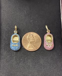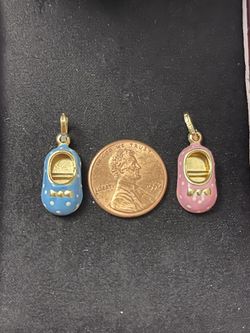 Solid 14k gold Pink And Blue Baby Booties Shoes Charm Pendant $175White Oak, MD