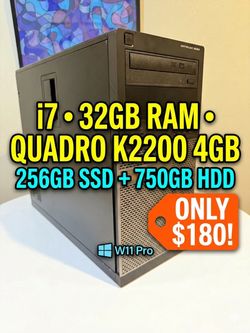 i7/32gb Ram/Quadro K2200 4gb Workstation PC Desktop Computer Windows 11 Pro$180Seattle, WA