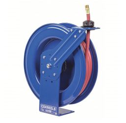 Spring Return Hose Reel: 50 ft (3/4 in I.D.), 3/4 in MNPT, 300 psi Max Op Pressure, Brass, Blue$650Irwindale, CA