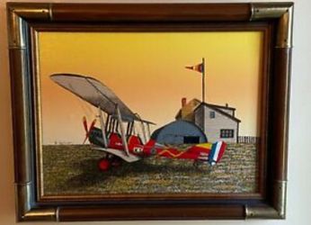 H. H.Hargrove Airplane, Signed Oil Painting, Red WWI Bi-Plane,$50Chicago, IL