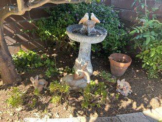 Vintage bird bath and cement deer statues$50Encinitas, CA