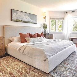 Free Delivery NEW IN-BOX King Bed, Dove Light Gray, Performance Fabric (Retail $2,099+tax)$1,000Kirkland, WA
