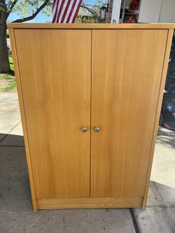 Wood Cabinet- free standing 3 shelves, two doors, and might deliver for free if you’re close enough.$50Denver, CO