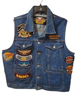 Vintage Harley Davidson Denim Vest With Rare Patches, Made In USA Sz XL, Great Condition, Harley Owners Group$100Paramount, CA