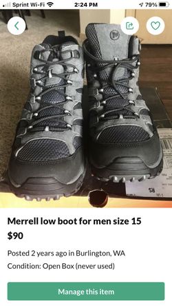 Merrell low boot for men size 15$60Mount Vernon, WA