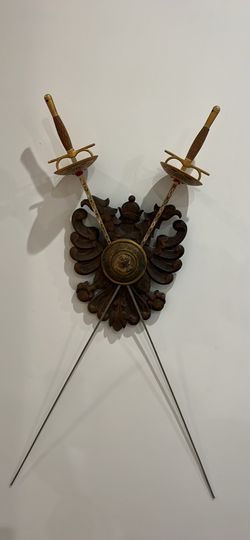 Vintage Antique Carved Wood Crest And Double Foul Decorative Wall Hanging$50Los Angeles, CA