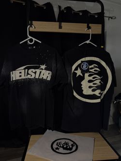Black beige rhinestone hellstar shirt Only Larges $85Hacienda Heights, CA