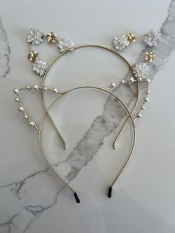 Set of 2 Gold Cat Ear Headbands with pearl and floral Embellishments – Perfect Condition$10Miami, FL