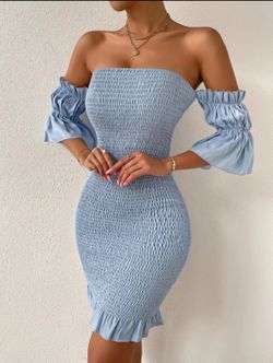 Off-Shoulder Baby Blue Midi Bodycon Dress – Size Small$15Miami, FL