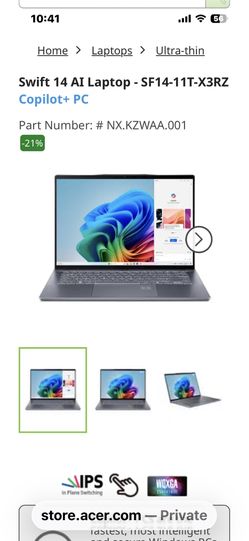 Acer Swift 14 Ai Laptop Acer Swift 14 Al - Qualcomm Snapdragon - 1TB Storage - SF14-11T-X3RZ$500Sugar Land, TX