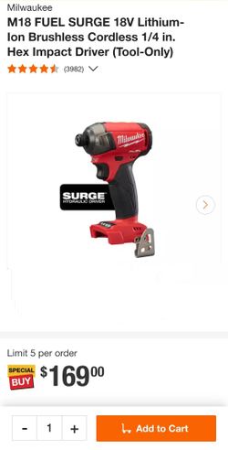 Milwaukee M18 Surge 1/4in Impact Driver & M18 Red Lithium XC 5.0 Battery$220Victorville, CA