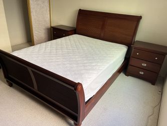 Solid wood sleigh frame queen with 2 matching nightstands.$1Alameda, CA