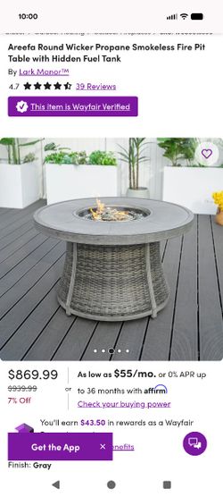 Areefa Round Wicker Propane Smokeless Fire Pit Table with Hidden Fuel Tank - Gray$575Littleton, CO