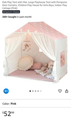 Kids Play Tent with Mat, Large Playhouse Tent with Pompoms Door Curtains$16Jarrell, TX