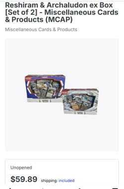 Pokémon Reshiram and Archaludon ex box (set of 2) and Black Kyurem ex & Melmetal ex Box Set$40Las Vegas, NV