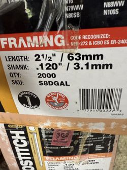 Bostitch Collated Framing Nails 2-1/2” S8DGAL 28 Degrees 2000 Count Box $25Pottsville, PA