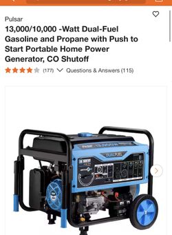 Pulsar 13,000/10,000 -Watt Dual-Fuel Gasoline and Propane Generator$850Whittier, CA