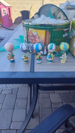 SET OF 5 VTG 1950s 60s SIGNED WOODEN EASTER HOT AIR BALLOON ORNAMENTS