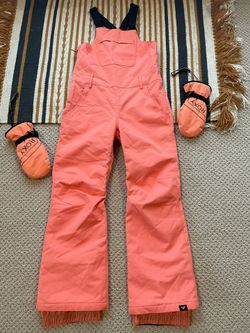 NWOT Roxy Girls Orange Coral Snow Overalls And Gloves Set Lot $65Claremont, CA