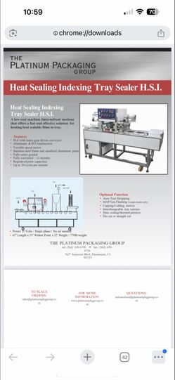 Heat tray sealer Plus Additional Inventory$15,000San Diego, CA