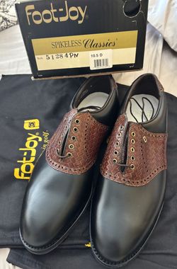 NEW in Box Mens FootJoy Spikeless Classics 10.5 D 51284 Black Brown Golf Shoes$100Carlsbad, CA
