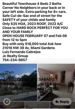 4Beds 2Baths 2 Floors Corner openhouse Feb 7&8 12 To 5pm$375Pompano Beach, FL