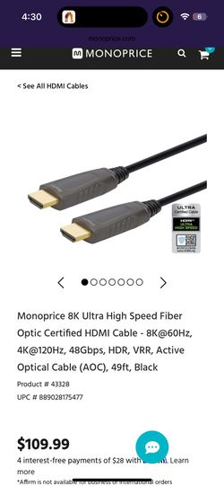 49’ 8K Slim HDMI 2.1 cable By Monoprice - MORE THAN HALF OFF$50New York, NY