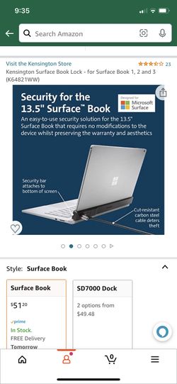 Surface BOOK Kensington Microsaver 2.0 Laptop Lock System$15Encinitas, CA
