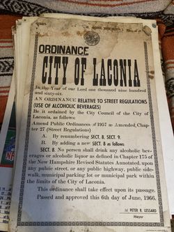 Vintage Original 1960’s City Of Laconia New Hampshire Alcohol Ordinance $160Fort Lauderdale, FL
