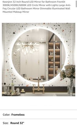 Keonjinn LED Round Mirror 32-inch Bathroom Vanity Mirror Anti-Fog Circle Wall Mounted Mirror Dimmable Makeup Mirror with Lights$95Wichita, KS