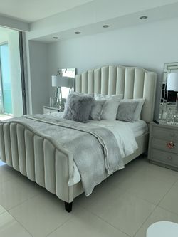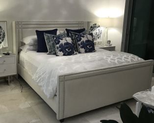 King Size Cream Studded Velvet Glam Bed$350Naples, FL
