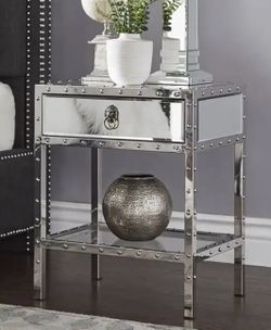 Mirrored And Stainless Steel Riveted Side Table Nighstand$150Sunny Isles Beach, FL