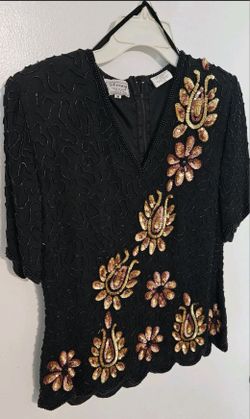 Vtg 100% Silk Sequin Size S-M Black with Flowers By Sténay Made In India V-Neck$20Tucson, AZ