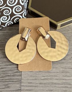 Hammered Gold Tone Circle Drop Earrings$9Covina, CA