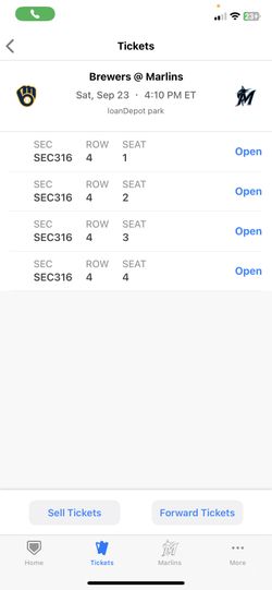 Miami Marlins Tickets 9/23 Vs Milwaukee Brewers$5Miami, FL