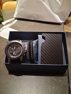 Mens watch bracelet carbon fiber wallet set$29San Bernardino, CA