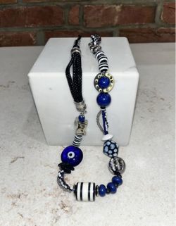 Vintage Treska Necklace Boho Ceramic & Glass Beads Blues White Black$23Pittsburgh, PA
