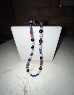 Vintage Millefiori Art Glass Bead Necklace 22" Long Red White Blue Hearts Boho$20Pittsburgh, PA