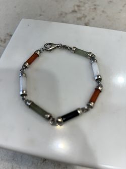 Vintage Sterling Silver Jade Tube Link Bracelet Multi Color$35Pittsburgh, PA