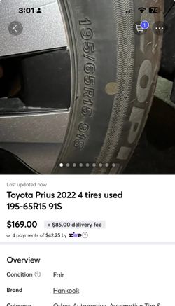 Toyota Prius 2022 4 tires used 195-65R15 91S$169Patterson, CA