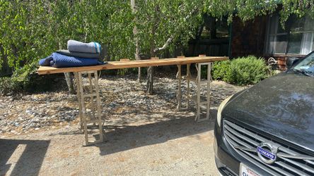 Free Make Shift Table. 2 Wine Barrel Racks And 20 Foot Solid Board$0Martinez, CA