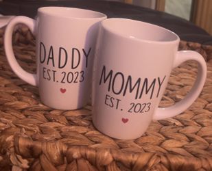 mommy & daddy established 2023 mug set ;; $10 in 33328$10Fort Lauderdale, FL