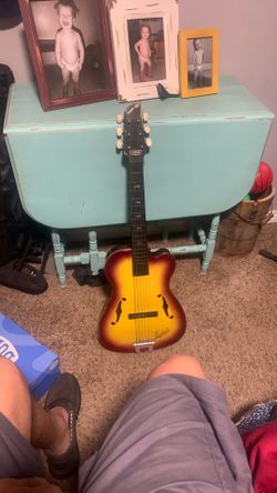 1958-60 EMENEE SUNBRUST TIGER PLASTIC REAL PLAYING GUITAR VERY RARE! $80Yorba Linda, CA